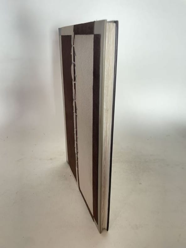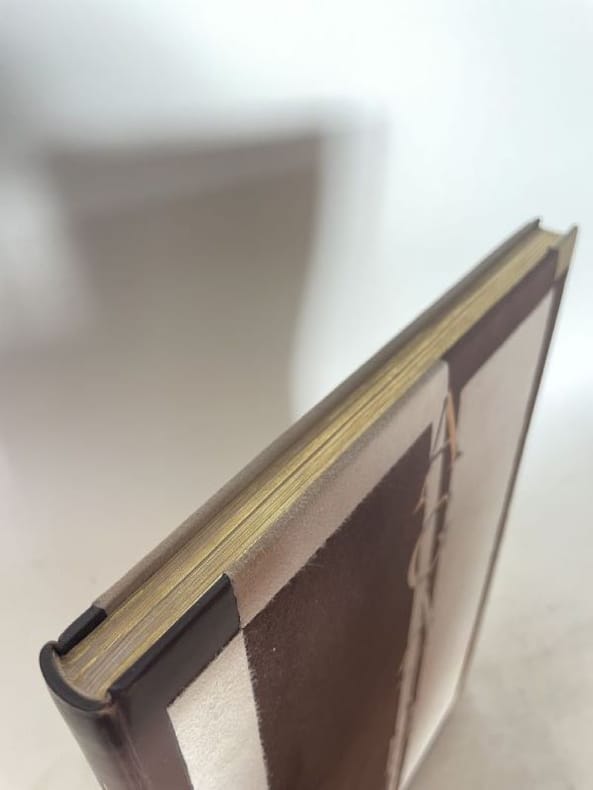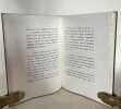 London Studio of Contemporary Art 1999 in-4 cartonnage éditeur London, Studio of Contemporary Art, 1999. 30 x 28 cm, in-4, 15 ff. n. ch. la plupart sur papier double plié à la japonaise - 1 composition en noir hors texte tirée sur papier acétate transparent, 1 composition à double page et 4 compositions à pleine page et de nombreux ornements obtenus par reproduction numérique au carbone à partir de photocopies, quelques ornements en couleur peints, cartonnage de l'éditeur entièrement illustré en noir, étui de toile couvert au premier plat d'une large pièce de titre imprimée et illustrée en couleurs.