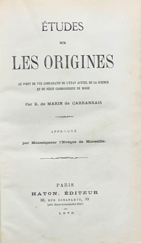 Très rare. Approuvé par Mgr l'Evêque de Marseille. De Dieu. De l'origine de l'Univers... Classification Dewey : 210-Philosophie et théorie