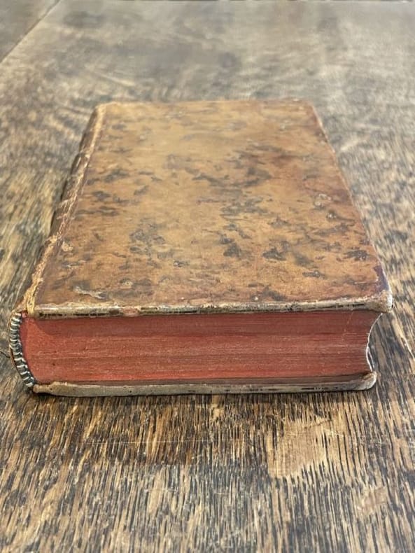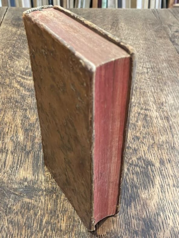 1768 1 volume , reliure plein veau raciné blond in-douze (binding full calfskin duodecimo) (17 x 10,2 cm), reliure d'époque, dos à nerfs (spine with raised band), décoration or (gilt decoration) à filets or (gilt lines) et à froid (blind-stamping decoration), entre-nerfs à fleuron au fer plein (between the raised bands floweret with full blocking stamp), pièce de titre sur fond bordeaux avec filets or (label of title with gilt lines), titre frappé or (gilt title), coiffes supérieure et inférieure accidentées (head and tail of the spine lightly damaged), plats ornés d'un filet à froid en encadrement, filets sur les coupes (manque de dorure - lack of gilt), toutes tranches lisses rouges (red edges), ex libris manuscrit à l'encre brune : " Docteur Breille de Chereille", sans illustrations (no illustration), XVIII + 392 pages, 1768 Florence, Paris, Vincent, Durand neveu Editeurs,