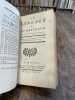 Paris, Nyon, 1763. In-12 de : XVI pages (titre et préface), 344 pages et deux feuillets d'approbation et privilège. Bon état intérieur, petites traces d'humidité en tête des premières pages. Plein veau blond marbré , dos lisse orné de fleurons dorés, pièce de titre de maroquin rouge, filet doré sur les coupes, tranches rouges. Les deux plats sont frappés aux armes du marquis d'Osmond, gouverneur d'Argentan. Bon état malgré un mors fendu en tête.