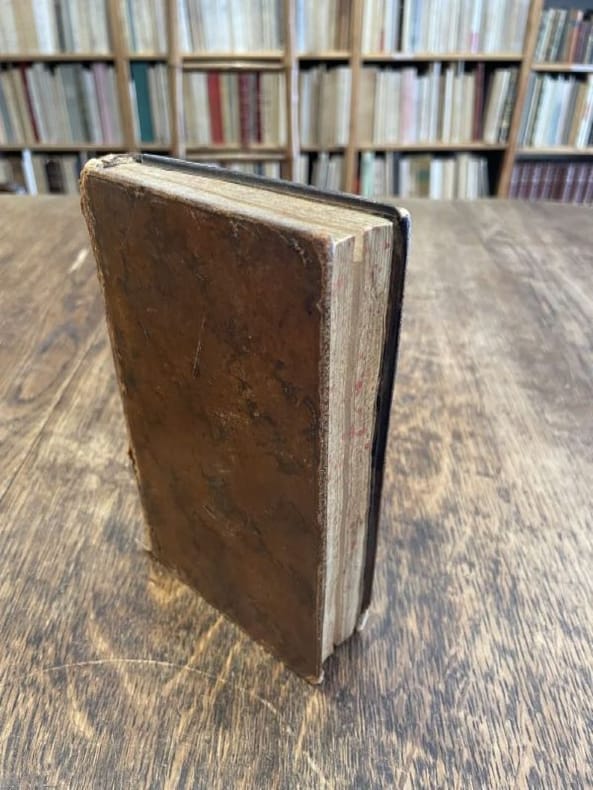 1763 Paris, Nyon, 1763, et Liège, Bassompierre, 1763, 2 ouvrages reliés en un volume in 12, pleine basane ancienne, dos lisse orné, tranches rouges, VIII-144 et IV-140 pages ; rares rousseurs ; reliure frottée, coins émoussés, un mors fendu sur 2 cm, coiffe inférieure usée (Barbier, II, 1068)