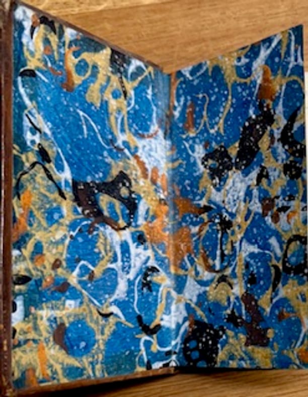 Paris Baudouin 1796 1 vol. relié in-24, veau fauve marbré, dos lisse pièce de tire de veau havane et filets dorés, frise dorée en encadrement sur les plats, tranches paille, (8) + 115 pp. (quelques rousseurs et mors un peu usés). Charmante reliure d'époque avec un joli papier de garde entièrement peint à la main (encres et gouaches). Ex-libris (timbre mouillé).