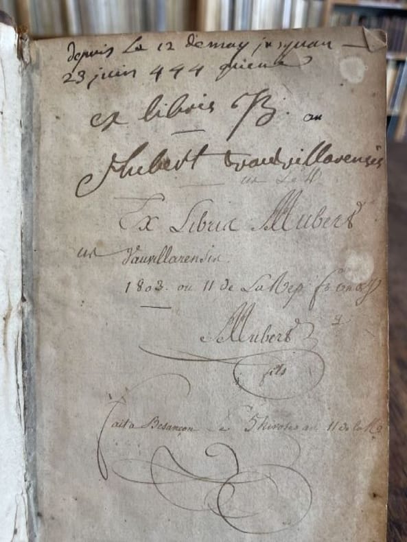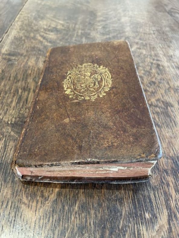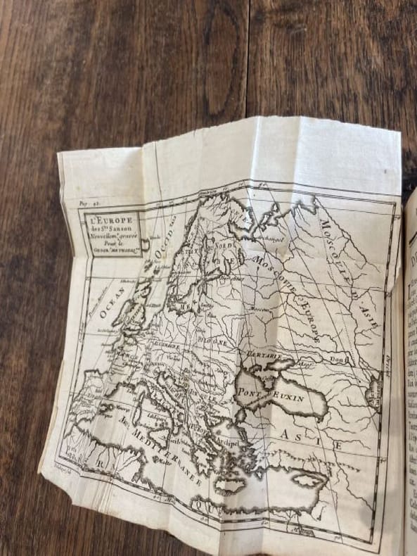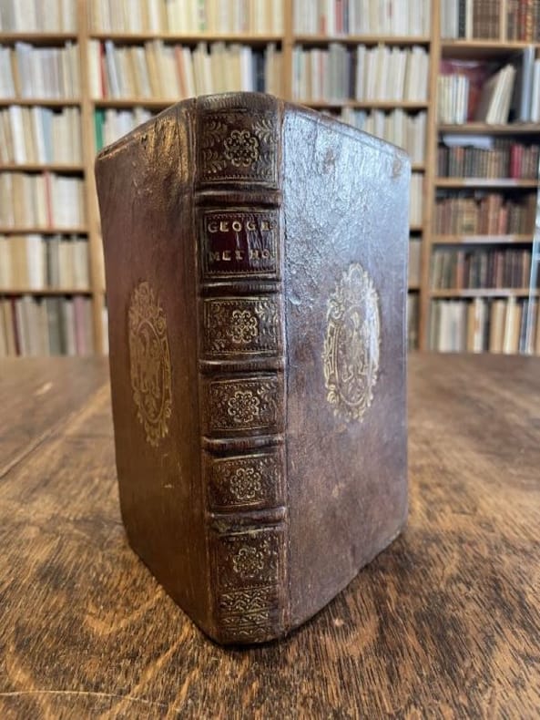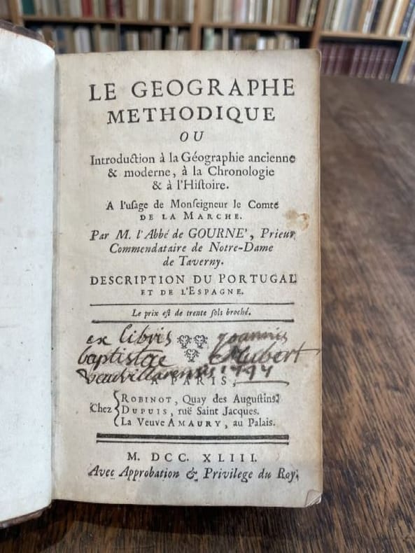 Paris Robinot - Dupuis - la veuve Amaury 1743 1 vol. relié in-12, veau brun, dos à nerfs avec pièce de titre de maroquin rouge, caissons ornés aux petits fers dorés et fleuron central, filet à froid en encadrement des plats portant armes dorées au centre, guirlande dorée sur les coupes, tranches rouges, 4 ff. + XCVIII + 236 pp. + 12 ff. (table + approbation), 3 cartes dépliantes. Bon exemplaire de ce manuel "à l'usage de Monseigneur le Comte de la Marche". Aux armes de la ville de Besançon (aigle germanique et colonnes d'Hercule) à la devise "Utinam". 3 ex-libris manuscrits anciens de la famille Veauvillarensis. En bonne condition.