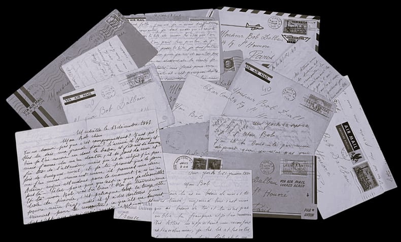 1943 Ensemble de 10 lettres autographes signées "Edith", au total 19 pages au format in-4 ou in-8, écrites de Marseille, Paris, New York et Hollywood, entre 1943 et 1956.Rare et émouvante correspondance inédite à Robert Dalban (1903-1987), mémorable majordome des Tontons flingueurs que Piaf rencontre par l'entremise de son épouse, la comédienne Madeleine Robinson avec laquelle elle a sympathisé aux Bouffes-Parisiens. Plus qu'un ami, "son Bob" devient pour Piaf un confident, un frère : elle signe à plusieurs reprises ses lettres d'un "ta frangine Edith".Cette correspondance dévoile toute l’ardeur sentimentale de la chanteuse. En 1943, elle évoque les tensions avec son amant en titre le parolier Henri Contet, alors même qu’elle entretient une liaison avec Yvon Jeanclaude, jeune chanteur ténébreux à la voix de basse. En 1946, c’est Yves Montand qui fait battre son cœur, "tout ce que je peux te dire c'est que je l'aime à en crever !" L’interprète évoque son état de santé fragile, "c'est patraque tout le temps cette pauvre mère Piaf", et sa joie de faire la nique à "Trenet, Chevalier et Tino" qui, comme elle, se produisent en matinées à Marseille en zone libre.Le coeur d’Edith est à son paroxysme en 1949 : elle a rencontré Marcel Cerdan. Mais le boxeur disparaît dans un accident d’avion le 28 octobre alors qu'il rejoignait Piaf en tournée à New York. Dans les lettres écrites entre le 3 novembre 1949 et le 21 janvier 1950, on peut lire le choc, la profonde détresse et le deuil provoqué par ce drame : "Tu sais, ma douleur, c'est affreux, je ne réalise pas. C'était la première fois que j'aimais et puis voilà. On m'enlève tout, on me brise le cœur, on me l'arrache, on m'écrase. Je voudrais mourir mais j'ai peur de ne pas le retrouver si je me suicide. Je ne vis que dans cet espoir, être là où il est, le reste je m'en fous! (...) je n'ai plus envie de chanter, tout ce que je faisais c'était pour lui!".Les dernières lettres couvrent la période avec son mari le chanteur Jacques Pills. Si le cœur d’Edith s’est apaisée, notamment avec le soutien qu’elle a trouvé auprès des Rose-Croix, elle fait montre d’une lassitude morale et physique, "aussi je veux serrer les poings, pendant deux ou trois ans avant qu'il ne m'arrive un pépin !" (1956). Fiche détaillée sur demande.