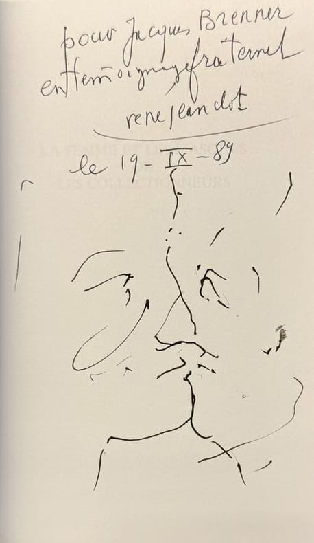 Lausanne L'Age d'Homme, coll. "Théâtre vivant" 1989 1 vol. broché in-8, broché, couverture illustrée, 141 pp. Edition originale de cette pièce sur le pouvoir maléfique de l'argent dans le monde de l'art, où l'on voit Lucifer s'incarner dans la peau d'un marchand de tableaux à l'affût des Christ en majesté et des vierges médiévales... Envoi de l'auteur à Jacques Brenner assorti d'un dessin original à l'encre.