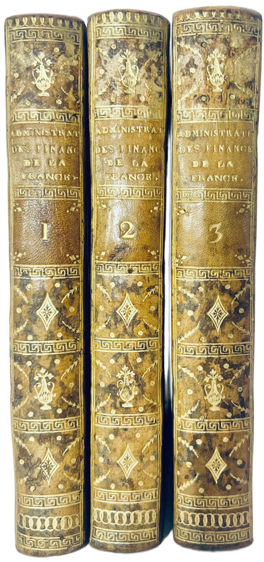 [Paris], , 1784. 3 tomes de VI-CLIX-353 pp. ; VII-536 pp. ; VIII- 468 pp.[DU BUAT NANCAY (Louis-Gabriel)]. Remarques d'un Français, ou Examen Impartial du livre de M. Necker sur l'Administration des Finances de la France, pour servir de correctif et de supplément à son ouvrage. A Genève, 1785. In-8 de (4)-182-(2) pp.Ensemble 3 vol. in-8, veau marbré, dos lisse orné, pièces de titre et de tomaison en veau citron, tranches marbrées (reliure de l'époque).