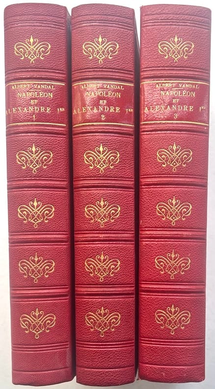 I. De Tilsit à Erfurt, Cinquième édition ; II. 1809. Le second mariage de Napoléon. Déclin de l'alliance, Quatrième édition ; III. La rupture, Troisième édition. Frottements légers sur la reliure, mais très bon exemplaire.