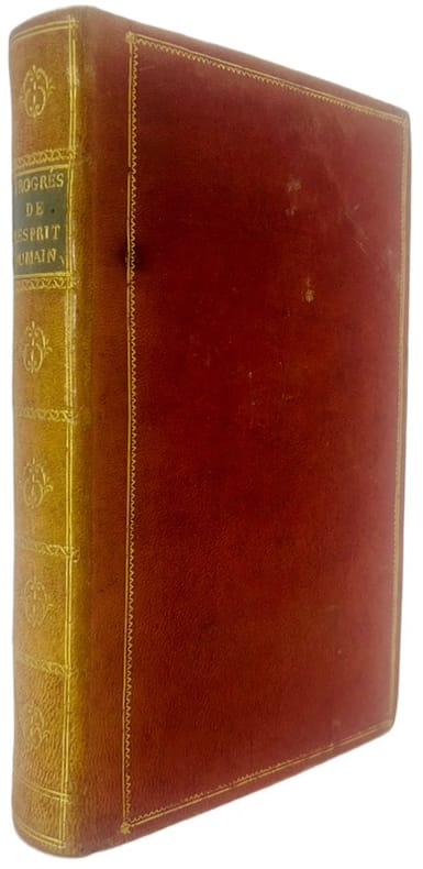 Véritable édition originale, sans mention d'édition. Printing and the Mind of Man, 246; En Français dans le Texte, 196. Le texte fondamental de Condorcet. À la suite se trouve relié : Dernier écrit de Condorcet précédé d'une notice sur ses derniers momens par Mme Suard. Paris, Brière, 1825. Avec un portrait lithographique en frontispice. 1/2 parchemin, pièce de titre sur dos long. Reliure début XIXè. Très bon Paris Agasse An III 1 volume in-8°