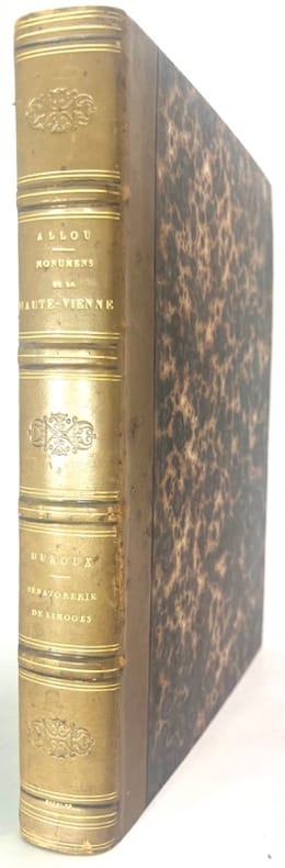 1. Édition originale dédiée au comte de Castéja, préfet de la Haute-Vienne, par Charles-Nicolas Allou (1787-1843) ingénieur au corps royal des Mines. Monuments gaulois, romains et du Moyen Âge dans les arrondissements de Limoges, Bellac, Rochechouart et Saint-Yrieix. Brunet, VI, 1371.2. Édition originale illustrée de quatre planches gravées représentant les anciens monuments de la province du limousin. « On trouve dans cet ouvrage rare la chronologie des comtes de Limoges et du limousin, celle des vicomtes de Limoges et des comtes de la Marche » Saffroy, II, 26709.Ex-libris armorié non identifié portant la devise "recte et tenaciter". Bel exemplaire.