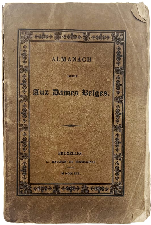 Préfaçon belge de la nouvelle Mateo Falcone de Prosper Mérimée, publiée une première fois avec le sous-titre « Mœurs de la Corse » le 3 mai 1829 dans la Revue de Paris, fondée au mois d’avril de la même année, puis jointe en 1833 au recueil Mosaïque contenant 13 textes publiés entre 1829 et 1832 dans la Revue de Paris et dans la Revue française. L'Almanach dédié aux dames belges qui contient des pièces de Victor Hugo (Les Fantômes), E.T.A. Hoffmann (La cour d'Artus, Une représentation de Don Juan) Marceline Desbordes-Valmore (Le Calvaire) a paru la même année sous le titre légèrement modifié : Almanach dédié aux dames hollandaises. Ex-libris P.G. Castex. Exemplaire sans les deux lithographies hors texte de Madou. Rousseurs.[Mosaïque, 1833 :] Escoffier 982 ; Vicaire, V, 710.
