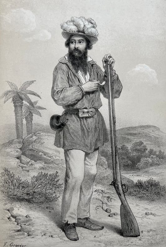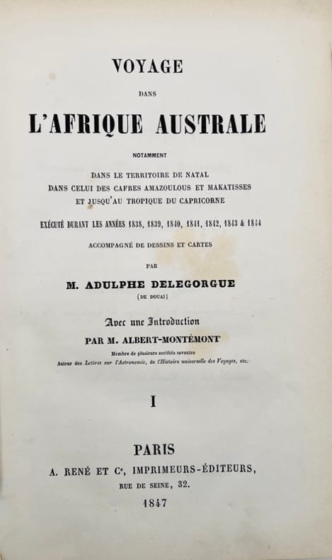 l’auteur embarqua comme marin à l'âge de 16 ans et navigua dans le nord de l'Europe, au Sénégal et aux Antilles. Il commença ses voyages d'explorations à 23 ans, appareillant du port de Bordeaux vers le cap de Bonne-Espérance, pour explorer l'Afrique Australe , après sa 3éme expédition en 1844, il regagna la France avec toutes les richesses accumulées au cours d'un voyage qu'il relata dans son livre . En 1850, il partit pour un nouveau voyage, en Afrique Occidentale mais mourut pendant la traversée. Adulphe Delegorgue rapporta de ses voyages une importante documentation et des informations sur nature entre le 30e et le 23eparallèles sud mais également sur la vie des populations autochtones .