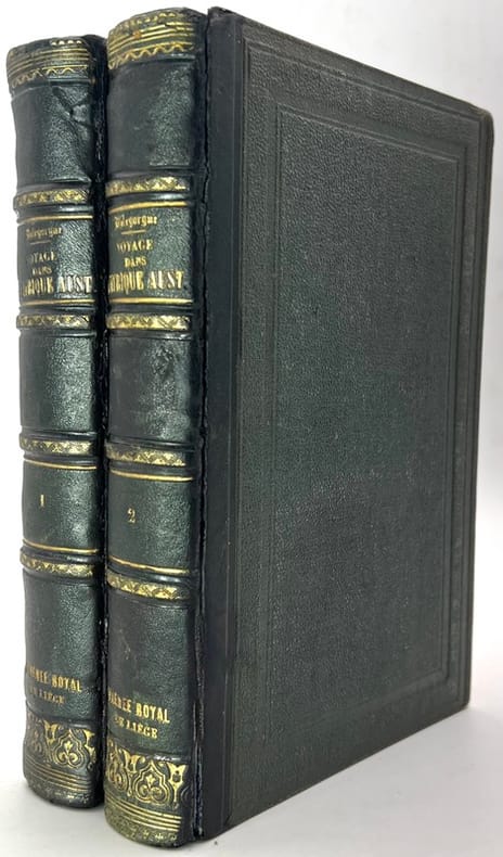 Paris, A. René , 1847. 2 vol. grand in-8 de XVI-580 pp. 1 frontispice, 4 planches et 1 carte repliée ; (4)-622-(2) pp. 4 planches et 1 carte repliée, demi-chagrin noir, dos orné à nerfs, inscription en pied « Athénée Royale de Liège » (reliure de l'époque).