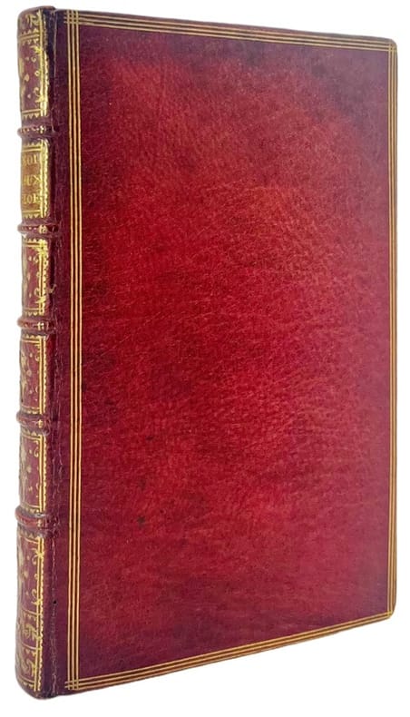 Genève, Pierre Aubert, 1624. in-8 de 255 pp.Trente deux demandes proposées par le père Cotton. Avec les solutions adjoustées au bout de chasque demande. Item soixante quatre demandes proposées en contre-eschange. Genève, Pierre Aubert, 1625. In-8 de 56 pp.2 pièces en 1 vol. in-8, maroquin rouge, dos orné à nerfs, pièce de titre de maroquin vert, triple filet doré d'encadrement sur les plats, tranches dorées (reliure du XVIIIe siècle).