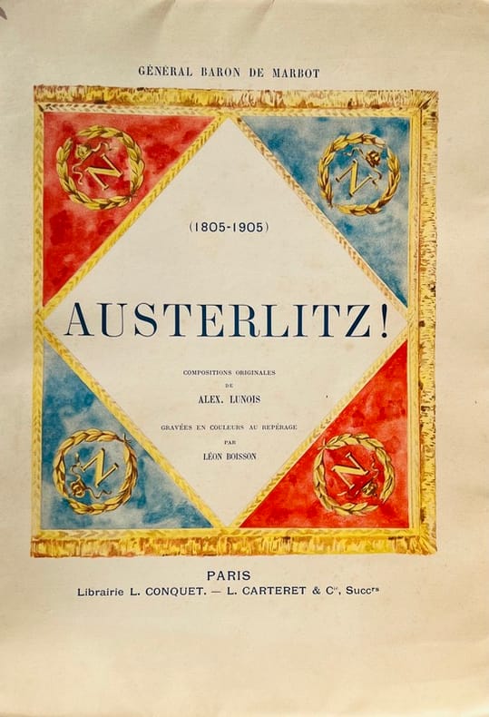 Dans cette pochette : 2 reproductions d'une gravure de Victor Adam et d'un tableau du Baron Lejeune représentant la Bataille d'Austerlitz - reproduction du plan de la Bataille d'Austerlitz - reproduction du numéro de la Gazette de France relatant la Bataille d'Austerlitz - reproduction de l'aquarelle réalisée par E. Lelièpvre : la remise des drapeaux à l'Empereur après la Bataille d'Austerlitz - reproduction de l'ordre du jour écrit de la main de Napoléon au soir de la Bataille d'Austerlitz. Gravures représentant chacune des figurines de la collection. Classification Dewey : 944.05-Premier Empire, 1804-1815