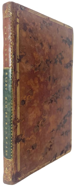 s.l.n.d. [1767, Hollande ?] 136 pages y compris le faux-titre (qui sert de titre), l'avertissement essentiel ou inutile (3 pages) et la table à la fin (4 pages). Relié à la suite : [Michielsen ?] Recueil des requêtes, placets et mémoires, les plus intéressants, que l'on présenta à Sa Majesté Impériale Joseph II, durant le Voyage qu'il fit dans ses Pays-Bas en 1781. Sa Majesté Impériale Joseph II à fait insérer dans ce recueil L'Apocalypse du Bien Heureux Jean, Apôtre de la Philosophie : Songe Philosophique Extraordinaire, que les Censeurs Ecclésiastiques, de Pays-Bas, n'avaient pas laissé imprimer. A Vienne en Autriche, de l'imprimerie de la Cour, 1782. [?] (6)-83 pages. 2 ouvrages reliés ensemble en 1 volume demi-maroquin noir à grain long, dos lisse orné, plats de papier marbré bleu, doublures et gardes blanches (reliure anglais du début du XIXe siècle). La dernière page (136) du premier ouvrage est légèrement salie, sinon bel intérieur très frais. Beau papier bien blanc. Reliure en très bon état avec quelques petites usures et frottements (plats), coiffe supérieure légèrement usée (peu visible). Le premier ouvrage, La défense de mon oncle [contre ses infâmes persécuteurs] est ici dans une édition qui reproduit le texte du tout premier tirage avec une fidélité exemplaire, comme le souligne José-Michel Moureaux dans son étude des différentes éditions de ce texte de Voltaire. On y relève à peine une demi douzaine de variantes légères, écrit-il, et pratiquement pas de coquilles. Cette édition faite avec des caractères hollandais n'es pas parisienne. Il est également impossible qu'elle ait été exécutée en province. Moureaux conclut donc à "une édition hollandaise, à la rigueur anglaise". Moureaux précise encore que ce tirage ne figurait pas dans la bibliothèque de Voltaire. Dans cette édition classifiée "C" par Moureaux, l'avertissement est présent et intégré à la pagination, tout comme la table qu'on trouve à la fin. Ce livre a remporté tout de suite un vif succès. Grimm en a entretenu ses lecteurs dès le 15 juillet 1767 (les premiers exemplaires apparaissent à la fin du mois de juin) avec un enthousiasme débordant : " (...) l'on étouffe de rire à chaque page. Il est impossible de rien lire de plus gai, de plus fou, de plus sage, de plus érudit, de plus philosophique, de plus profond, de plus puissant que cette Défense, et il faut convenir qu'un jeune homme de soixante treize ans comme neveu, sujet à ces saillies de jeunesse, est un rare phénomène." (Correspondance littéraire tome VII, p. 367, cité par Moureaux). "Cet ouvrage est une plaisanterie particulièrement dirigée contre un M. Larcher, auteur obscur d'un prétendu Supplément à la Philosophie de l'Histoire [...] M. de Voltaire, dont l'amour-propre s'égratigne facilement, accommode de toutes pièces ce piteux adversaire. Il enveloppe aussi dans cette facétie Fréron et autres personnages, plastrons ordinaires de ses railleries. On ne peut refuser à cet écrit beaucoup de gaîté et même le feu de la jeunesse." (Bachaumont, 24 juillet 1767). On trouve dans cette défense des chapitres aussi curieux que : de la providence - l'apologie des dames de Babilone - de l'alcoran - des romains - de la sodomie - de l'inceste - de la bestialité et du bouc du sabbath - d'Abraham et de Ninon de Lenclos - du temple de Tyr - des Chinois - de l'Inde et du Vedam - que les juifs haïssaient toutes les nations - de Warburton (pamphlet ajouté ici) - des hommes de différentes couleurs, etc. Référence : J.-M. Moureaux, La défense de mon oncle, édition critique, Genève, Slatkine, 1978. Le second ouvrage, Recueil de requêtes etc., serait l'oeuvre (entre autres) d'un certain Michielsen, employé au Comité de la Caisse de Religion, "qui présenta une série de requêtes soit disant présentées à l'empereur Joseph II lors de son voyage aux Pays-Bas. En vérité, il s'agissait de requêtes fictives et satiriques. Dans un style à la fois d'une grande finesse, plein d'allusions et de virulence, l'auteur s'attaqua au clergé, à la noblesse et aux commerçants-escrocs en les ridiculisant. On y trouve tout le patrimoine, ou dois-je dire tout le résidu des Lumières, même une obscénité libertine qui s'en prend à la religion (...)" (extrait des Etudes sur le XVIIIe siècle, volume 6, Roland Mortier, Hervé Hasquin, Université libre de Bruxelles. Groupe d'étude du XVIIIe siècle, Éditions de l'Université de Bruxelles, 1980). On compte en tout, outre un avertissement (4 pages), 13 requêtes dont 2 en latin (qu'il faut traduire pour en tirer toute la verve satirique). A la fin du volume on trouve imprimée sur 3 pages une liste des livres choisis à placer dans différentes bibliothèques publiques aux Pays-Bas (on y trouve la plupart des livres matérialistes et anticléricaux parus à l'époque (Boulanger, Voltaire, Helvétius, Rousseau, le bon sens du curé Meslier, le Compère Mathieu de Du Laurens, l'Arétin moderne, etc. A la suite et sur 11 pages on trouve l'Apocalypse du Bien Heureux Jean apôtre de la philosophie. Ce volume est indiqué en 1836 comme une satire fort peu spirituelle mais rare et recherché (Chronique rimée de Philippe Mouskes, vol. 1). Ouvrage rare. Réunion très intéressante de deux textes satiriques et philosophiques. Bel exemplaire.