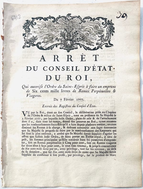 A Lyon, de l'Imprimerie du Roi, 1777. In-4 broché de 4 pp.
