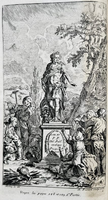 Le Marquis de Mirabeau publia en 1756 cet ouvrage dont le titre devait faire fortune au point de devenir le sobriquet de celui qui l'avait composé : L'Ami des hommes, recueil d'essais qui préfigure les physiocrates ; il dit, dans son avertissement, qu'il a rassemblé « des morceaux épars et négligés qu'il avait laissés couler de sa plume ». La thèse fondamentale de L'Ami des hommes, est que la population est la source de toute richesse ; l'auteur se propose de démontrer l'utilité d'une population nombreuse et aisée. Mais l'ouvrage comporte aussi un éloge de l'agriculture, art par excellence, et une théorie de la liberté du commerce. On y trouve aussi des propositions de réforme sociale : le Marquis de Mirabeau est un adepte du travail obligatoire pour tous. Un ton à la fois prophétique et familier fit le succès du livre, l'auteur étant parvenu à dire au moment convenable ce que tout le monde pensait plus ou moins. Les souverains d'Europe consultèrent celui que l'on n'appelait plus que « l'ami des hommes » et le docteur Quesnay, médecin de Madame de Pompadour et chef d'école des physiocrates, séduit par l'ouvrage, le rallia à sa cause. Le frontispice gravé par Fessard d'après Meltay illustre, suite à l'apostrophe insolente de l'auteur : « Votre Majesté n'a-t-elle jamais pensé que l'air impératif et dédaigneux qu'on donne à ses statues est ou puéril ou fâcheux ? », sa proposition d'ériger une statue du roi « tendant les mains à une populace empressée, la regardant avec des yeux de père, & lui distribuant (ses) trésors, & qu'on lise en inscription au-dessous : Louis élevé pour mieux voir les besoins de son peuple ».Six tableaux repliés. L'exemplaire est formé de l'édition d'Avignon de 1762 pour les cinq premières parties (la première et la troisième parties sont datées de 1758 ; la seconde 1762 ; la quatrième partie est datée de 1759 et la cinquième de 1761) et pour les trois dernières parties, de l'édition de Hambourg de 1760, qui comprend, de plus que l'édition française la Lettre d'un ingénieur de Province à un inspecteur des Ponts et Chaussées. Tchemerzine-Scheler IV, p. 750 ; Coquelin et Guillaumin II, 190 ; Higgs, 1143n ; Kress, 5736.