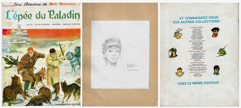 Dargaud S.A éditeurs / " Collection Pilote " 1967. In-4 broché de 48 pages au format 28 x 21,5 cm. Couverture illustrée par Yves Thos. Dos carré. Premier plat avec minuscule trace et petit pâlissement des 2 premières lettres du titre. Infimes frottis aux coins. 4ème plat avec liste et titres parus de 6 collections : Astérix, Barbe-Rouge, Michel Tanguy, Iznogoud, Achille Talon et Fort Navajo. Intérieur frais. Cahiers collés. Dessins en couleurs de Gérald Forton sur scénario de Henri Vernes. Le tirage Lombard est cartonné. Très rare édition originale en version broché, avec dépôt légal du 3ème trimestre 1967 - N° 1217 - Editeur N° 227. Très bel état de fraicheur. Précieux exemplaire sur lequel, l'ancien propriétaire a collé au verso de la couverture, un dessin original au crayon, signé et daté de Gérald Forton.