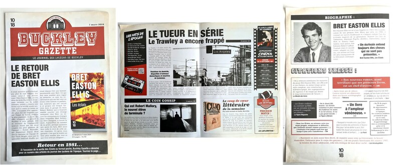 Editions Christian Bourgois 2024. Plaquette de 4 pages au format 29,5 x 21 cm. Couverture avec photographies. Dépliant publicitaire illustré édité pour la sortie du roman " Les Eclats ", présenté comme une fausse gazette du Lycée Buckley, avec textes de Bret Easton Ellis et du service presse éditeur. Edition originale hors commerce en état proche du neuf.