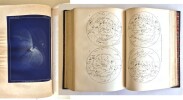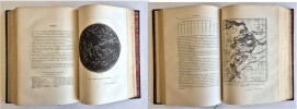 C.Marpon et E.Flammarion, éditeurs 1882. Fort in-4 relié d'époque de 792 pages au format 28,5 x 5 x 20 cm. Elégante reliure demi basane bleu à coins avec plats en papier marbré. Filets dorés. Dos rond à 5 nerfs avec nom d'auteur, titre et date en pied dorés. Frottis aux nerfs, mors et coins. Trace au mors du 4ème plat. Page de garde en papier marbré. Intérieur frais sans rousseurs. Portrait de l'auteur en frontispice. Description complète du ciel visible à l'oeil nu et de tous les objets célestes faciles à observer. Rare supplément de " L'astronomie populaire ", illustré par 400 figures, cartes célestes et chromolithographies en couleurs, sous serpentes. Edition originale en superbe état général.