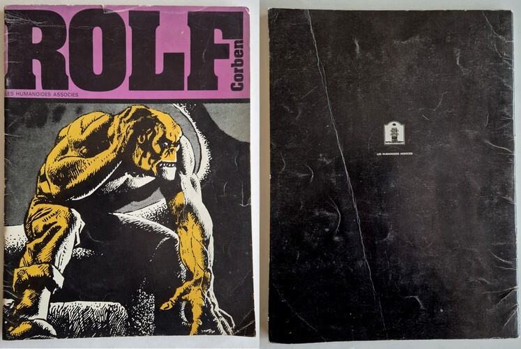 Editions Humanoïdes Associés / Collection " Mirage " n° 3 de 1975. In-4 agrafé de 44 pages au format 32 x 24 cm. Couverture illustrée. Plats avec petits frottis et légères traces de pliure aux coins. Dos avec petits frottis. Deux petites restaurations au scotch invisible au verso de la couverture et en haut du mors. Légère trace de pliure angulaire au 4ème plat. Intérieur resté frais. Dessins en noir et scénarios de Richard Corben. Etat général correct. Rare édition originale de Rolf suivi de Oteg.