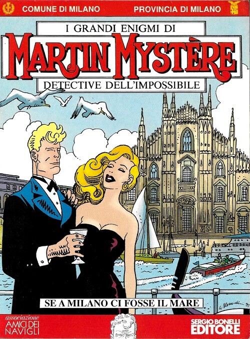 Sergio Bonelli Editore S.p.A / réalisé avec la collaboration de l’Association Amici dei Navigli et la commune de Milan en 1995. Couvertures illustrées. Plats et intérieur frais. Fascicule hors commerce agrafé de 16 pages au format 21 x 16 cm. Mini BD avec scénario et textes en italien de Alfredo Castelli accompagnés de dessins en noir de Rodolfo Torti. Supplément hors commerce au Martin Mystère n° 159 diffusé dans les provinces lombardes touchées par les canaux. Rare édition originale en état proche du neuf. Epuisé.