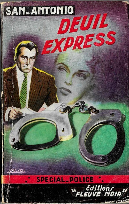 Editions Fleuve Noir / Spécial Police n° 63 de 1954. In-12 broché de 221 pages au format 18 x 12 cm. Superbe couverture illustrée de Michel Gourdon. Dos resté carré avec de tout petits frottis et légèrement pâli. Plats et intérieur frais malgré d'infimes frottis aux coins et aux mors. Livre non massicoté. 4ème plat avec liste des titres dans un cadre, avec dernier titre paru n° 62 - Michel Coulmep - Mauvaise carte. Prix 225 FRS . B.C en bas à gauche. N° 63 en bas à droite. Imprimerie Foucault ( Kremlin-Bicêtre ), 4ème trimestre 1954. Rarissime édition originale du 12ème San-Antonio, surtout dans un aussi bel état de fraicheur.
