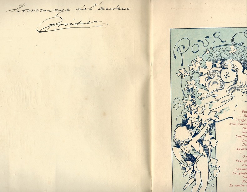 Victor-Havard & Cie éditeur sans date ( vers 1880 ). In-8 agrafé. Magnifiques illustrations de Choubrac sur un poème de john Croisier. Plats légérement poussiéreux, avec petites rousseurs, sinon très bel état. Rarissime édition originale ornée d'un envoi de l'auteur au verso de la couverture. Livre de toute beauté.