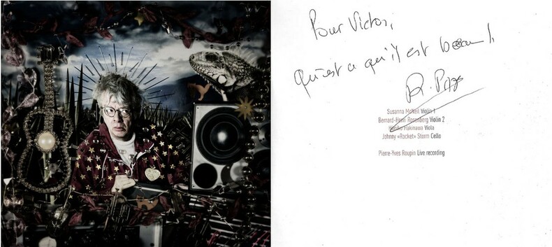 Ramon Pipin productions 2020. Génial album de Alain Ranval sous le pseudonyme de Ramon Pipin, accompagné par son groupe " Pipin Band ", intitulé " Alafu ". CD en version digipack. On joint en bonus un fascicule de 24 pages au format 13,5 x 12,5 cm, intitulé " Perles à Pipin ", contenant des aphorismes et des pensées fulminantes, jaillies de ce cerveau extra-lucide, embellies par des dessins de Olivier Legan. On joint aussi le CD single, avec le titre " Qu'est-ce que c'est beau ". Bel ensemble collector, en état de neuf. Exemplaire avec belle dédicace de Ramon Pipin sur le livret. Collection personnelle.