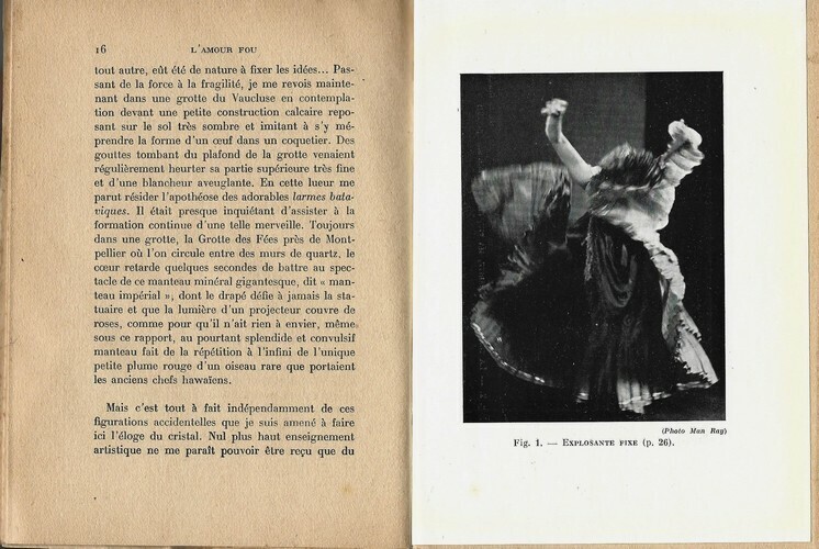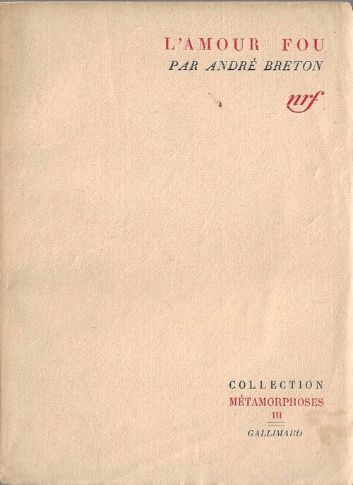 Editions Gallimard / Collection Métamorphoses n° III de 1945. In-8 broché de 176 pages au format 19,5 x 14 cm. Couvertures saumon avec titre imprimé en rouge et noir. Dos carré bruni, avec petit manque au bas. Premier plat avec petite tache et rousseurs au coin inférieur droit. Minuscule manque au coins supérieur gauche du 4ème plat. Intérieur resté frais. Exemplaire en partie non coupé. Texte accompagné de photographies en noir hors texte, dont sept de Man Ray, quatre de Brassaï, une de Dora Maar et une d'Henri Cartier-Bresson. Deuxième tirage en bel état général. Rare.