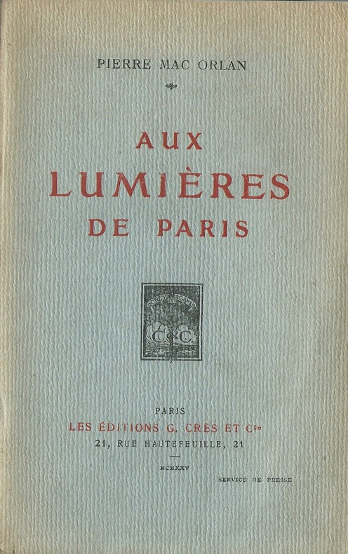Editions G.Crès et Cie 1925. In-12 broché de 205 pages au format 12 x 19 cm. Couverture gris-bleu avec titre imprimé en rouge. Dos et bords des plats légèrement insolés. Toute petite tache au bord du 1er plat. Exemplaire du service de presse, tiré sur alfa d'édition, ne contenant pas les illustrations de Pascin. Edition originale enrichi d'une cordiale dédicace autographe, signée, de l'auteur. Superbe état général.