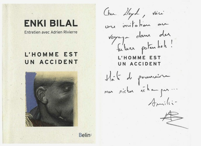 Editions Belin 2021. In-12 broché de 196 pages au format 18 x 12 cm. Couverture illustrée. Dos carré. Plats et intérieur frais. Entretien entre Enki Bilal et Adrien Rivierre, suivi d'une bibliographie complète de Enki Bilal. Illustrations en noir de Enki Bilal. Edition originale en état superbe, proche du parfait. Exemplaire enrichi d'une belle dédicace autographe, signée, pleine page de Adrien Rivierre.