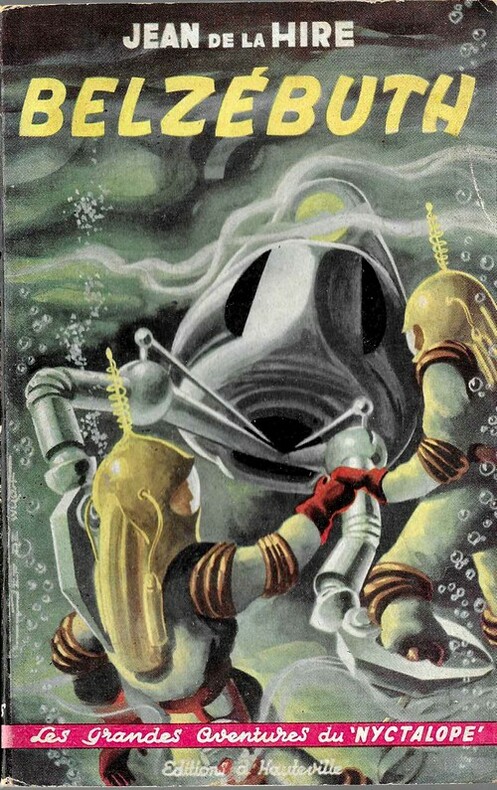 Editions d'Hauteville ex éditions André Jaeger / Série " Jean de la Hire " n° 13 de 1954. In-12 broché de 222 pages au format 18 x 11,5 cm. Superbe couverture illustrée par Jef de Wulf. Dos carré. Plats et intérieur frais malgré de microscopiques frottis aux coins. Réédition de ce roman paru à l'origine en 1930. Rare édition originale chez l'éditeur, surtout dans un tel état général de fraicheur.En 1952 André Jaeger, lance cette collection consacrée exclusivement aux romans de Jean de La Hire, divisée en sous-collections : Fantastic - Les Grandes Aventures du Nyctalope - Série Policière - Série sentimentale qui n'eut pas de dénomination. A l'exception des n° 3 et 4 qui sont résolument hors genre, les autres titres s'apparentent à la littérature imaginaire : Science-fiction, Fantastique, et surtout les aventures du Nyctalope, qui demeure le premier super-héros mondial avec comme pouvoirs, sa vision nocturne et un coeur greffé le rendant presque immortel. A noter que le Nyctalope, Léo Saint-Clair dans la vie ordinaire, est aussi présent dans des romans sortis dans la série Fantastic. La grande majorité des couvertures seront réalisées par René Brantonne puis par Jef de Wulf. En 1954, l'éditeur lancera une autre collection intitulée " Mousquetaire " qui ne connut que huit numéros sous le label Hauteville avec la publication de romans de cape et d'épée signés Arsène Lefort ou André Laumière, alias de Jean de La Hire.
