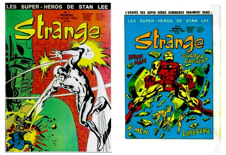 Sans mention d'éditeur, ni de date. Tirage certainement pirate et édité à petit nombre d'exemplaires en fac-similé du mythique n° 1 de Strange qui fut publié par les éditions Lug en 1970. In-12 broché de 128 pages au format 20 x 14 cm. Couvertures illustrées. Dos carré muet. Plats et intérieur parfaits. Contient : Les X-Men, Iron Man, Daredevil, Le Surfeur d'Argent. Scénarios de Stan Lee sur dessins bicolores de Jack Kirby, John Buscema, Don Heck et Bill Everett. Etat de neuf.