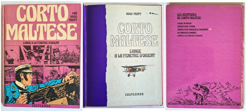 Editions Casterman 1975. In-4 cartonnage éditeur de 45 pages au format 32 x 24 cm. Couvertures illustrées. Dos carré avec petit tassement et frottis en haut en bas. Plats et intérieur frais, malgré d'infimes tassements et frottis aux coins. Problèmes habituels de pelliculage aux mors. Première version en couleurs qui contient : L'Ange à la Fenêtre d'Orient - Fables et Grands-Pères. Rare édition originale bel état général. Côte 200 € au BDM.