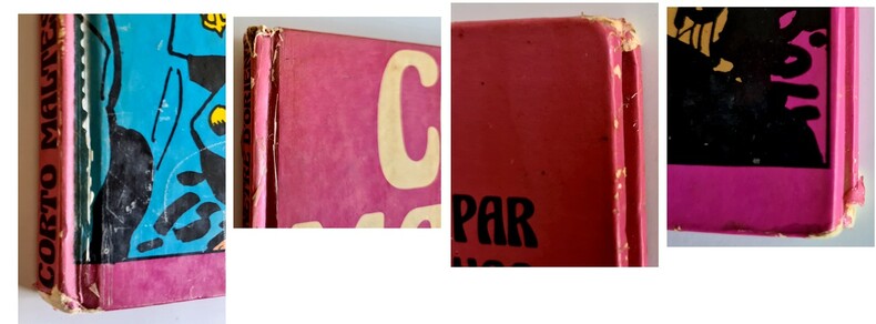 Editions Casterman 1975. In-4 cartonnage éditeur de 45 pages au format 32 x 24 cm. Couvertures illustrées. Dos carré avec frottements en haut en bas. Plats avec frottements et tassements aux coins et aux bords. Problèmes habituels de pelliculage aux mors. Frottement au 4ème plat. Intérieur resté frais, malgré d'infimes rousseurs et deux cachets avec nom de l'ancien propriétaire, situés en haut de la page de garde et de la page 3. Première version en couleurs qui contient : L'Ange à la Fenêtre d'Orient - Fables et Grands-Pères. Rare édition originale en état général juste correct. Côte 200 € au BDM.