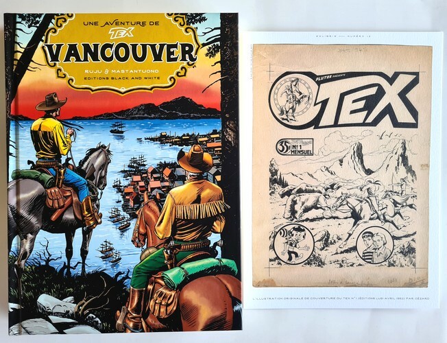 Editions Black & White / Collection Tex Willer n° 16 de 2025. In-4 relié de 336 pages au format 30 x 22 cm. Couverture illustrée en couleurs. Dos carré avec titre. Contient en début cahier d'ouvrage les illustrations des couvertures des fumetti. L'album contient l'épisode issu des Tex 745-746 et 747 avec dessins en noir de Mario Dotti sur scénario de Pasquale Ruju. Tirage limité à 1000 exemplaires. Edition originale en état de neuf. Avec Ex Libris bonus , hommage à Tex, n° 13 illustré en couleurs par Cézard.