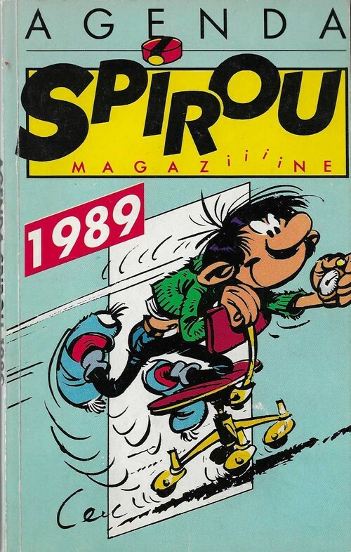 Editions Dupuis - Hebdomadaire Spirou n° 2246 de 1988. Agenda Spirou Magazine, supplément à l'hebdomadaire Spirou. In-12 broché de 142 pages au format 18 x 11 cm. Couvertures illustrées par André Franquin avec Gaston Lagaffe. Dos carré avec minuscules frottis. Plats et intérieur frais, malgré d'infimes frottis aux coins. Nombreuses participations dont : André Franquin, Berck, Philippe Bercovici, Raoul Cauvin, Eric Closter, Stephan Colman, Luc Cromheecke, Christian Darasse, Lucien De Gieter, Charles Degotte, Paul Deliège Yvan Delporte, Frank, Bruno Gazzotti, André Geerts, Glem, Gos, Marc Hardy, René Hausman, Frédéric, Janry, Daniel Kox, Malik, Luc Mazel, Patrick Pinchart, Sergio Salma, Alec Séverin, Staif, François Walthéry, Marc Wasterlain, Webel, Patrick Weber, Will, Wozniak, etc Exemplaire en bel état de fraicheur. Edition originale.