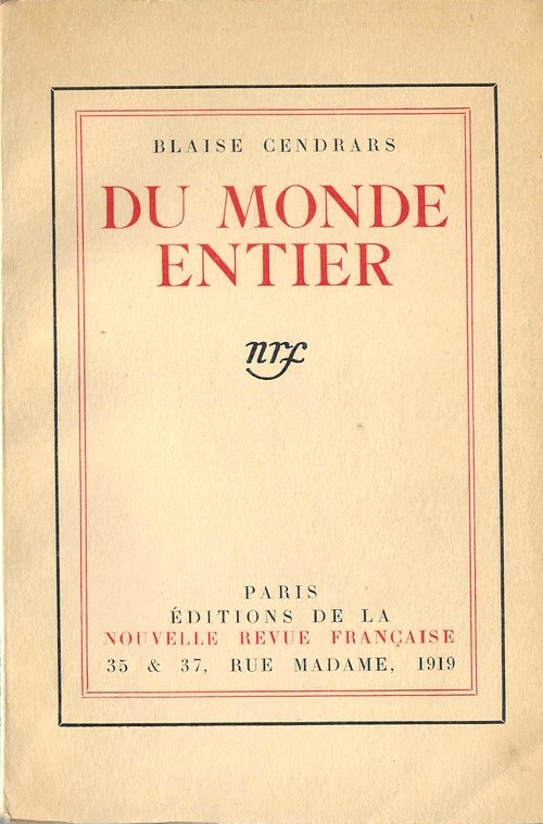 Paris, Editions de la Nouvelle Revue Française / Gallimard 1919. In-12 broché de 130 pages au format 19,5 x 13 cm. Couverture avec titre imprimé en rouge et noir. Dos carré. Plats et intérieur frais. Tirage sur alfa d'édition. Contient : Les Pâques à New-York - La Prose du Transsibérien et de la petite Jeanne de France - Le Panama ou les Aventures de mes sept oncles. Bibliographie de ces œuvres en fin d'ouvrage. Edition originale collective en état superbe.