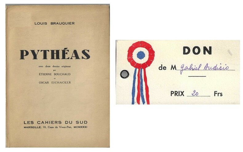 Les Cahiers du Sud 1931. In-12 broché de 76 pages au format 19,5 x 14 cm. Couverture avec titre imprimé. Dos carré. Plats et intérieurs frais. Exemplaire non coupé. Pièce de théâtre enrichie de 2 dessins en noir de Etienne Bouchaud et Oscar Eichacker. Etude suivie de 13 poèmes inédits d'Apollinaire. Tirage spécial à 200 exemplaires sur alfa du service de presse, notés " SP ", après 6 madagascart, 75 pur fil et 400 alfa. Edition originale en très bel état général. Notre exemplaire a été offert par Gabriel Audisio, directeur des Cahiers du Sud et contient sa carte de don.