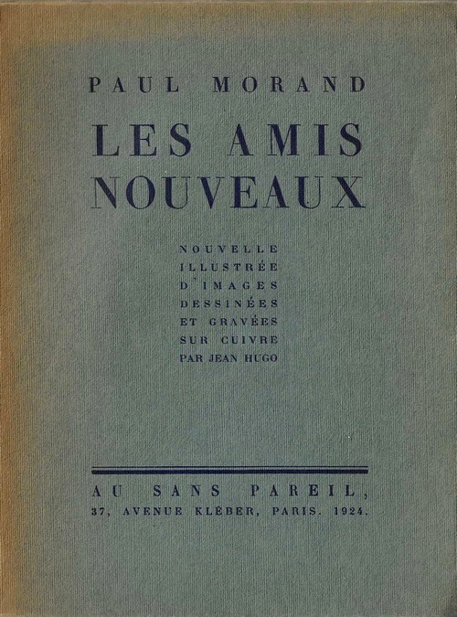 A Paris, Au Sans Pareil 1924. In-8 broché de 36 pages au format 19 x 14,5 cm. Couverture bleue, rempliée, avec titre imprimé. Dos carré insolé. Plats et intérieur frais, malgré une trace d'insolation aux mors des plats, habituelle pour les titres de cette collection. Nouvelle illustrée d'un frontispice et d'images dessinées et gravées sur cuivre par Jean Hugo. Un des 1000 exemplaires numérotés sur vélin lafuma de Voiron ( n° 1154 ), après 20 sur vélin de cuve, 10 sur japon, 80 sur hollande et 100 sur arches. Edition originale en superbe état général.