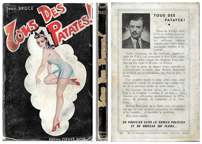 Editions Fleuve noir / Collection " Spécial Police " n° 2 de 1949. In-12 broché de 217 pages au format 18,5 x 12 cm. Superbe Pin-Up en couverture illustrée, non signée, par ( André Gosselin ? ). Dos carré soigneusement recollé, avec petits frottis en haut et en bas et aux mors. Coins du 1er plat avec petit frottis. 4ème plat avec photographie de Jean Bruce. Intérieur resté frais. Bel état général. Rarissime édition originale.