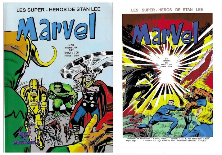 Sans mention d'éditeur, ni de date ( Editions Lug ). Tirage pirate collector édité à petit nombre d'exemplaires en facsimilé grand format du n° 18 de Marvel jamais paru aux editions Lug. Ce livre n’existe qu’en facsimilé, créée par un amateur. In-8 broché de 80 pages au format 29 x 20,5 cm. Couvertures illustrées. Dos carré muet. Plats et intérieur frais. Contient : Les 4 fantastiques, les Vengeurs et Captain Marvel. Scénarios de Stan Lee avec dessins de Jack Kirby, Steve Ditko et Don Heck Rare édition en état de neuf. Cet ouvrage qui fait partie de ma collection personnelle, fut trouvé sur une brocante dans un petit lot de facsimilés, certainement réalisés par un amateur. Il porte une étiquette " Collection privée ". Curiosité bibliophilique. Curiosité bibliophilique.