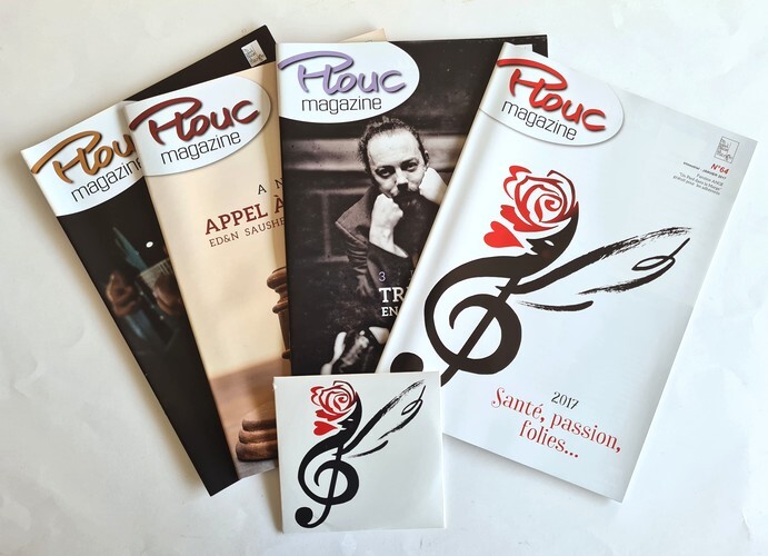 Plouc Magazine n° 64, 65, 66 et 67. Supplément trimestriel au fanzine " Ange " édité par " Un pied dans la Marge ". Année 2013 complète avec le CD " Harfleur...quelques pétales ", neuf, qui contient des titres inédits de Ange. 4 revues agrafées de 22 pages au format 29,5 x 21 cm. Couverture photo. Editos de Christian Décamps. Revues entièrement consacrées au groupe " Ange ", avec photographies, texte de et sur les musiciens de Ange. Poster central à chaque numéro. Petit tirage sur couché. Rare édition originale, totalement épuisée et en état de neuf.