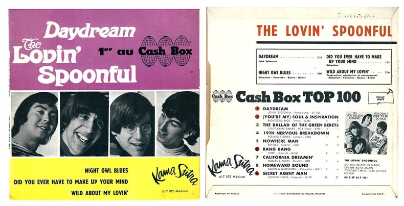 Kama Sutra – 617 102 de 1966. Disque 45 tours avec belle pochette photographique. Un nom inscrit au verso. Contient les titres : Daydream - Night Owl Blues - Did You Ever Have To Make Up Your Mind - Wild About My Lovin'. Disque en superbe état, apparemment très peu écouté. 1er pressage français.