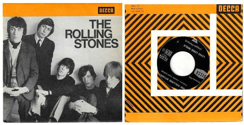 Decca – 72.076 de 1966. Disque 45 tours avec pochette photographique, ajourée au 4ème plat, version Juke-box. Contient les titres : Paint It, Black - Long Long While. Disque en superbe état, apparemment très peu écouté. Rare 1er pressage français, glissé sous un plastique de protection d'époque, d'un disquaire du Mans.