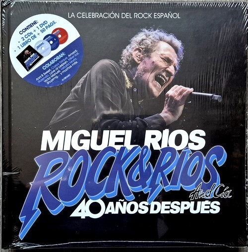 Altafonte Records 2023. Livre-Disque collector, au format 30 x 30 cm, de Miguel Rios + invités. Couverture photographiques. Dos carré. Luxueux objet, contenant 2 CD de Miguel Rios en concert avec de nombreux invités + un DVD reprenant l'intégralité du concert. Contient aussi un luxueux livret photographique de 50 pages. Tirage de luxe collector, limité, en état de neuf, scellé. Epuisé.