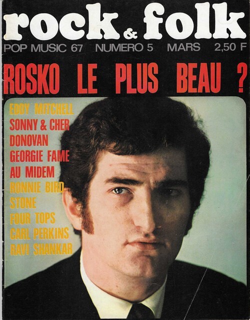 Revue Rock & Folk n° 5 de mars 1967. In-4 agrafé de 66 pages, au format 27 x 21,5 cm. Couvertures photographiques avec Eddy Mitchell et Ravi Shankar. Couvertures avec d'infimes frottis aux coins. Intérieur frais. Mensuel musical français consacré à la musique rock et pop, fondé en 1966 par Robert Baudelet, Jean Tronchot, Philippe Adler, Jean-Pierre Leloir et Philippe Koechlin. La revue connut la participation de nombreux photographes dont : Jean-Pierre Leloir, Claude Gassian, Pierre Terrasson, Gaëlle Ghesquière, Bruno Ducourant,Patrice Guino, Jean-Louis Rancurel, Dominique Tarlé, Bertrand Alary et Saddri Derradji. Nombreux articles sur le Rock, le blues, la soul, la pop dont : Eddy Mitchell, Sonny & Cher, Donovan, Georgie Fame, Ronnie Bird, Four Tops, Carl Perkins , Jimi Hendrix, Ravi Shankar, etc. Nombreuses chroniques avec de très nombreuses photographies en noir et blanc. Dessins en noir de Cabu. Rarissime édition originale, en très bel état de fraicheur de ce mythique n° 5.