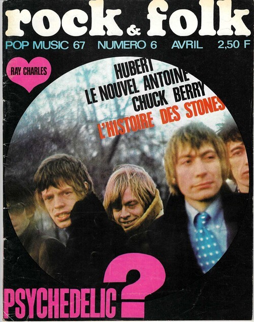 Revue Rock & Folk n° 6 de avril 1967. In-4 agrafé de 66 pages, au format 27 x 21,5 cm. Couvertures photographiques avec The Rolling Stones. Couvertures avec d'infimes frottis aux coins. Intérieur frais. Mensuel musical français consacré à la musique rock et pop, fondé en 1966 par Robert Baudelet, Jean Tronchot, Philippe Adler, Jean-Pierre Leloir et Philippe Koechlin. La revue connut la participation de nombreux photographes dont : Jean-Pierre Leloir, Claude Gassian, Pierre Terrasson, Gaëlle Ghesquière, Bruno Ducourant,Patrice Guino, Jean-Louis Rancurel, Dominique Tarlé, Bertrand Alary et Saddri Derradji. Nombreux articles sur le Rock, le blues, la soul, la pop dont : The Rolling Stones, Chuck Berry, Pretty Things, Ray Charles, Eric Clapton, Antoine, etc. Nombreuses chroniques avec de très nombreuses photographies en noir et blanc. Dessins en noir de Cabu. Rarissime édition originale, en très bel état de fraicheur de ce mythique n° 6.