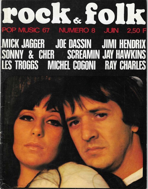 Revue Rock & Folk n° 8 de juin 1967. In-4 agrafé de 66 pages, au format 27 x 21,5 cm. Couvertures photographiques avec Sonny & Cher. Couvertures avec d'infimes frottis aux coins. Intérieur frais. Mensuel musical français consacré à la musique rock et pop, fondé en 1966 par Robert Baudelet, Jean Tronchot, Philippe Adler, Jean-Pierre Leloir et Philippe Koechlin. La revue connut la participation de nombreux photographes dont : Jean-Pierre Leloir, Claude Gassian, Pierre Terrasson, Gaëlle Ghesquière, Bruno Ducourant,Patrice Guino, Jean-Louis Rancurel, Dominique Tarlé, Bertrand Alary et Saddri Derradji. Nombreux articles sur le Rock, le blues, la soul, la pop dont : Mick Jagger, Joe Dassin, Jimi Hendrix, Sonny & Cher, Screamin Jay Hawkins, Les Troggs, Michel Cogoni, Ray Charles, etc. Nombreuses chroniques avec de très nombreuses photographies en noir et blanc. Dessins en noir de Cabu. Rarissime édition originale, en très bel état de fraicheur de ce mythique n° 8.